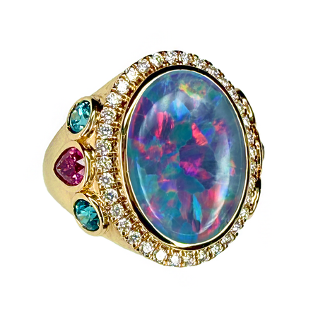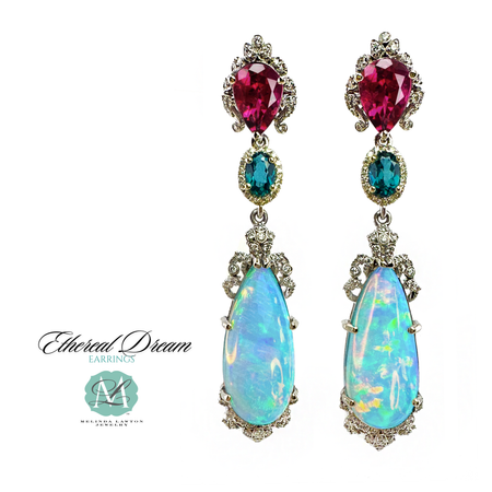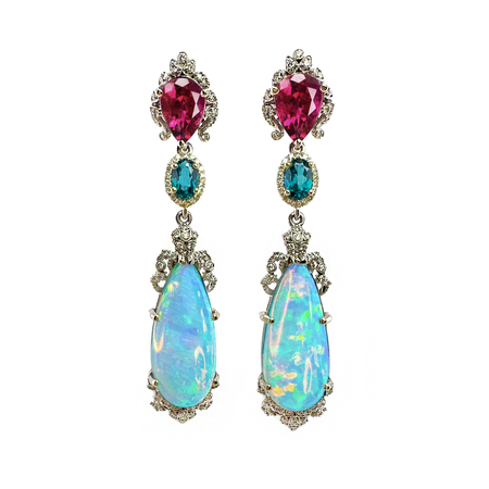 The Ethereal Dream Earrings! Opals, Blue-Green Zircon, Rubellite and Diamonds in 14K White Gold!