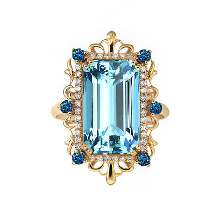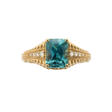 Blue Zircon and Diamonds in 14K gold